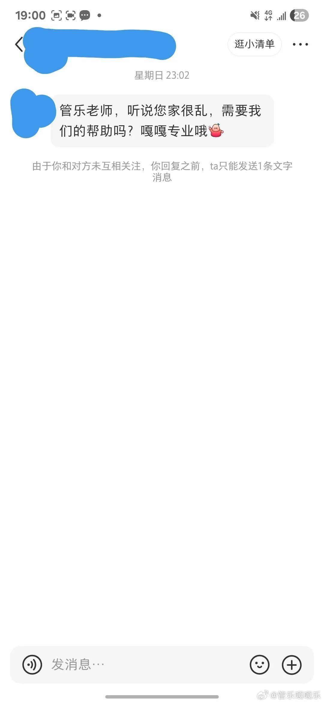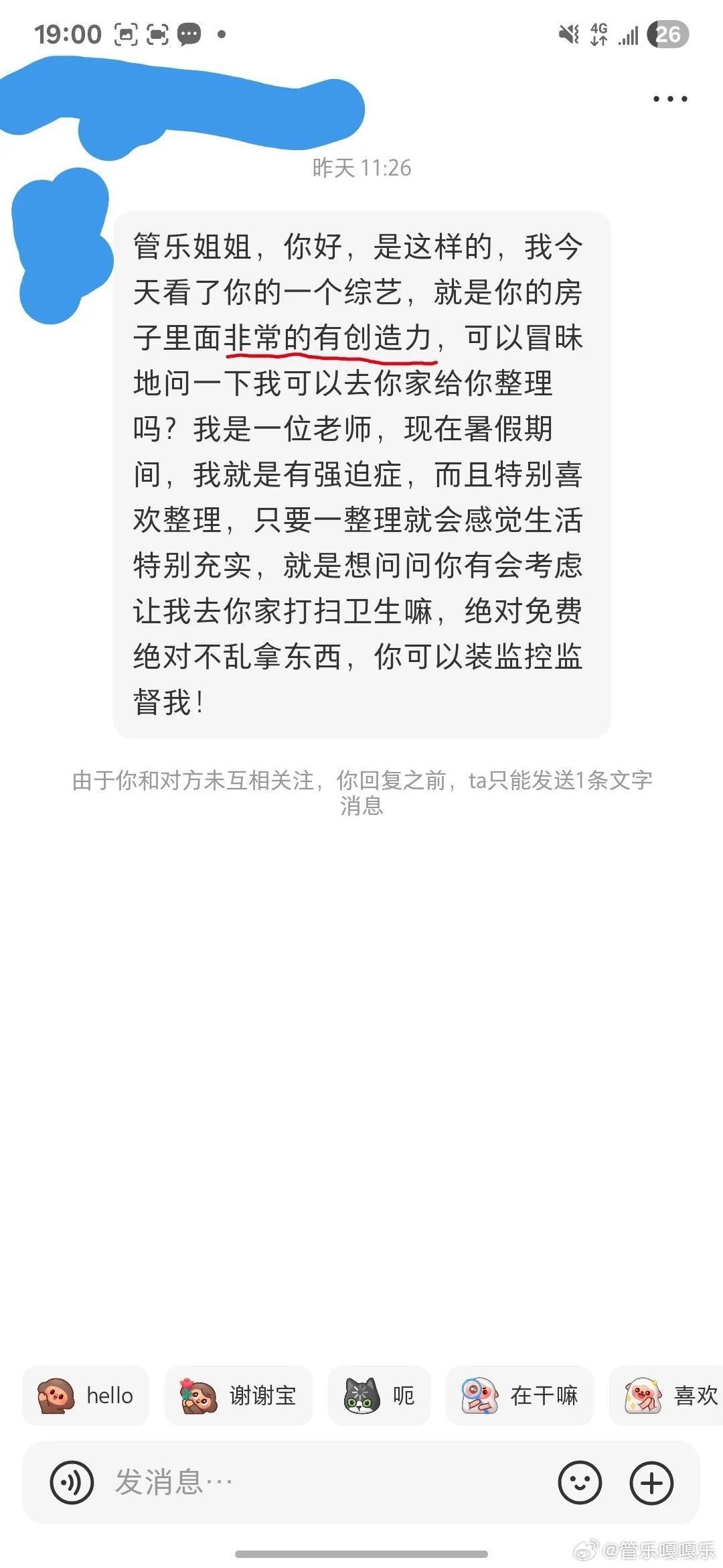 管乐晒出收到的一些私信,原来真的有人看了管乐家因此抓狂,逼疯强迫症,也有一些专业的整理师毛遂自荐↓