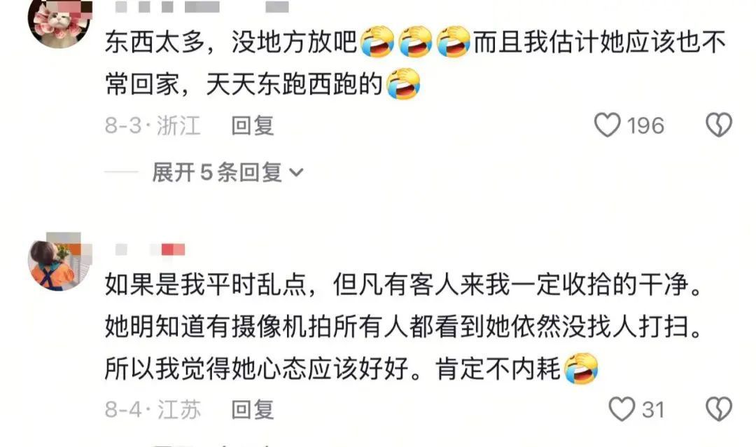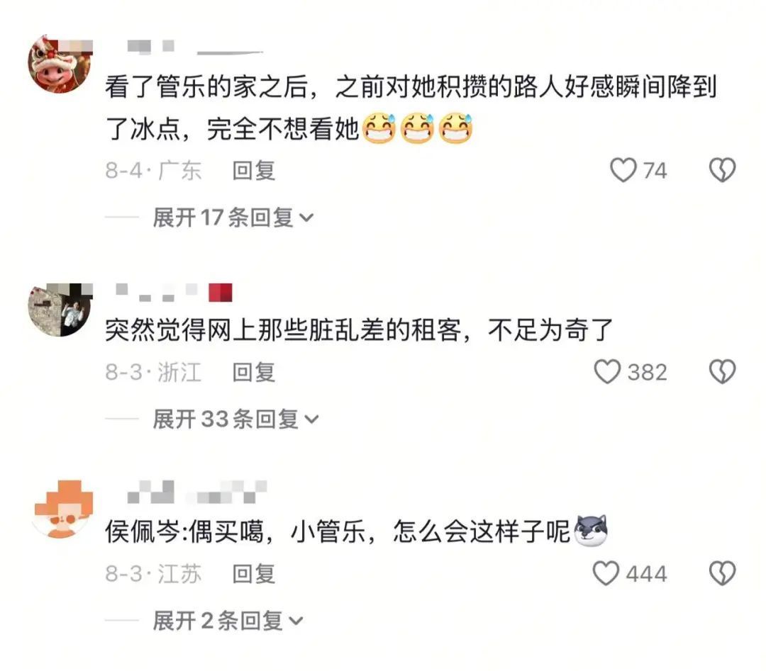 很多网友看到了管乐的片段,纷纷发表看法,有人说对她的路人好感度降低,也有不少人觉得只是东西乱并不是脏,她一定不内耗,上节目展现真实的家,不会因为摄像机拍着而收拾一下。