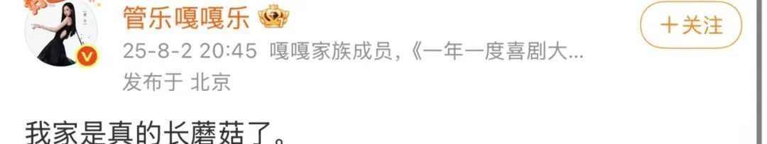 而且管乐自己爆料又有一段时间没回家,结果家里洗衣机后面漏水,她起初没发现,后来看到长出了蘑菇。